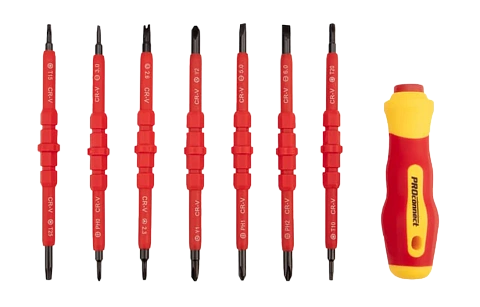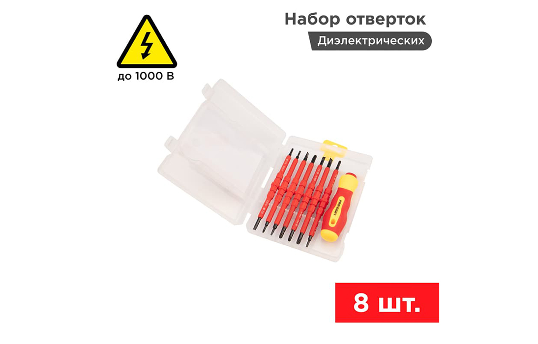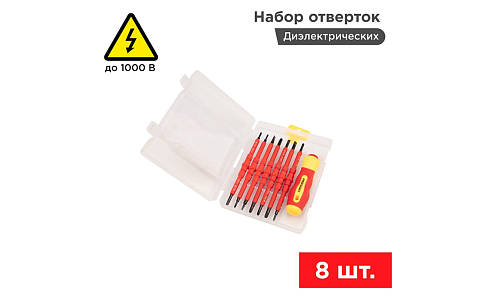 Данный набор отверток предназначен для электромонтажных работ, монтажа/демонтажа крепежных соединений: шурупов, саморезов и т. д. Двухсторонние диэлектрические стержни отвертки, изготовленные из высококачественной хромованадиевой стали, покрыты специальным изоляционным материалом и обладают оксидированными намагниченными наконечниками. Корпус эргономичной изолированной рукоятки выполнен из пластика, не скользит в ладони, что обеспечивает дополнительный комфорт при работе. Набор поставляется в пластиковом боксе для удобства хранения и транспортировки.