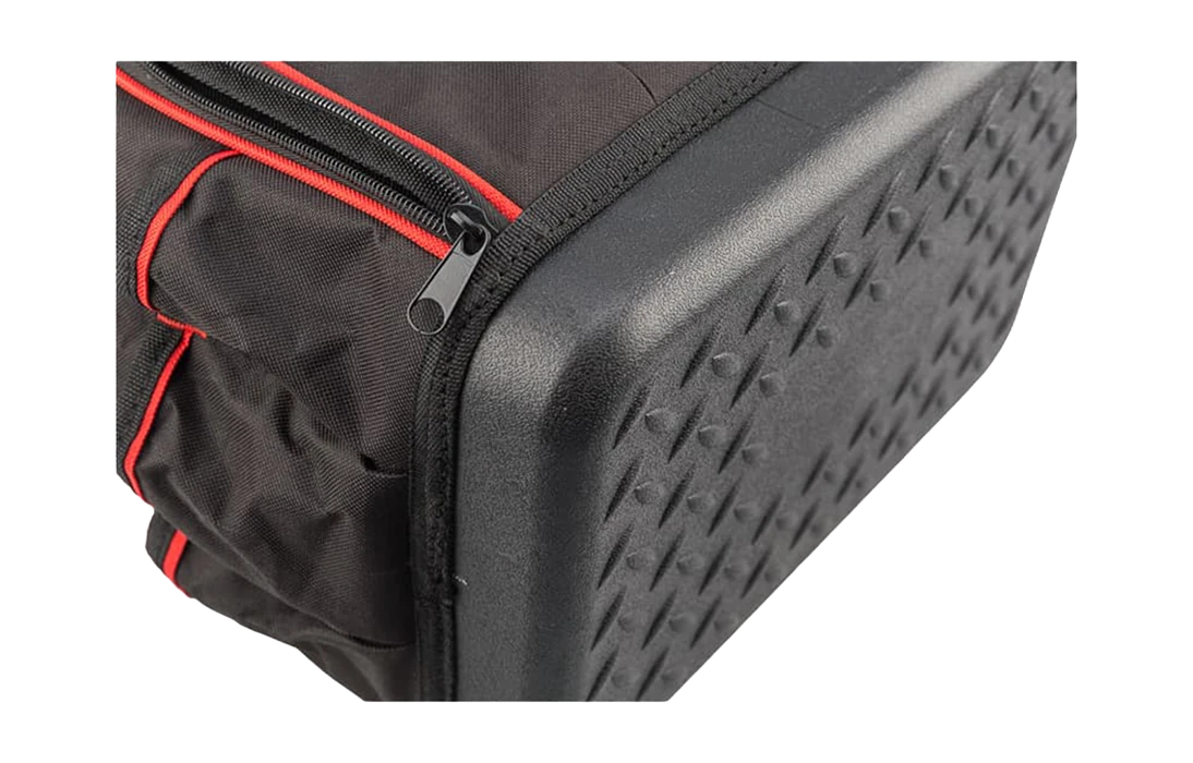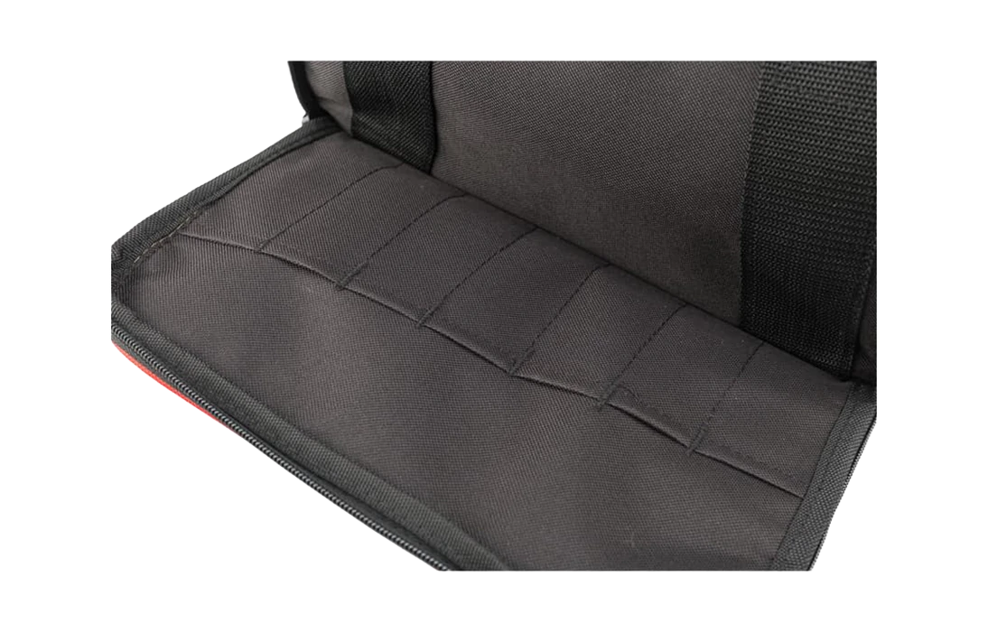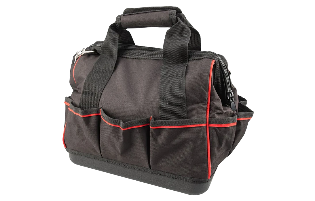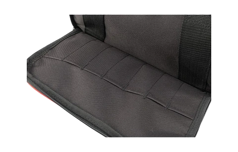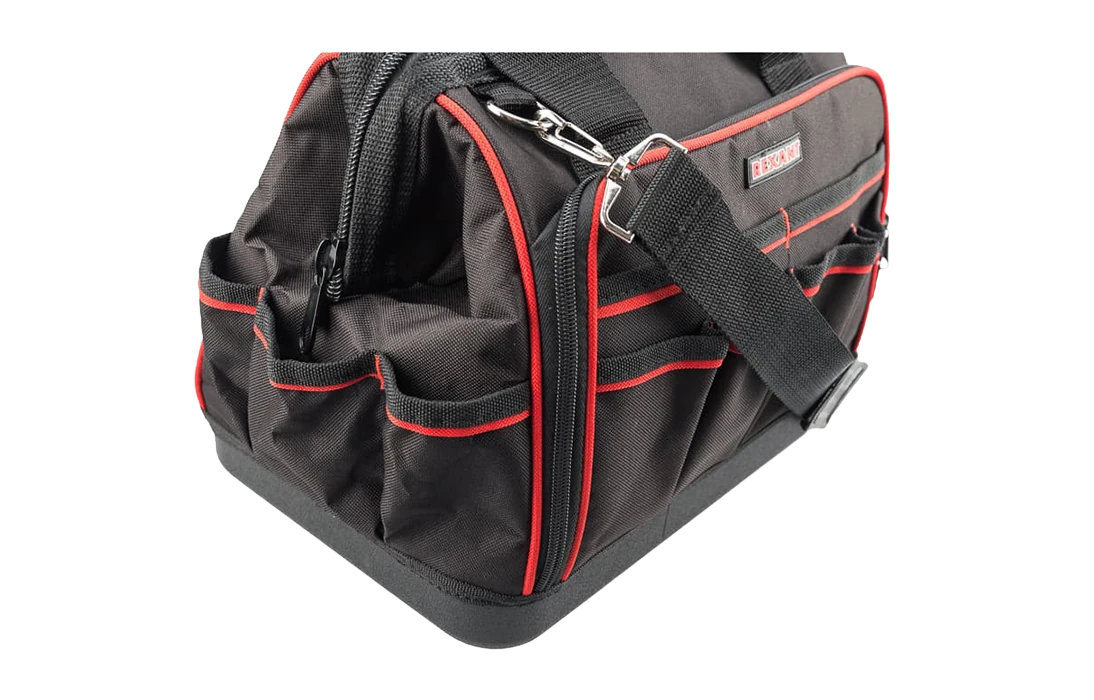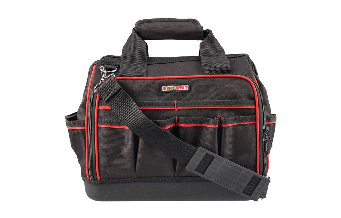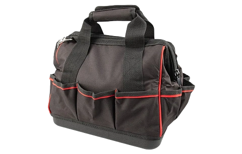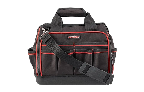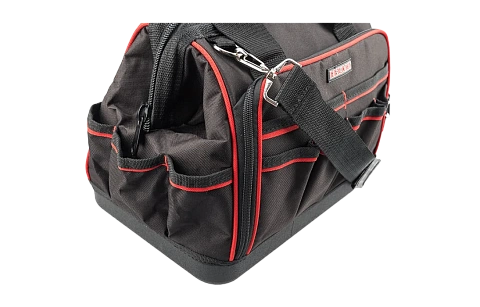 Сумка монтажника оснащена 25 карманами и предназначена для комфортной транспортировки инструментов. Она выполнена из водонепроницаемого комбинированного материала, пропитанного полиуретановым составом и поливинилхлоридом, который используют в изготовлении тентов для шатров, торговых палаток и различного снаряжения для туристических поездок.