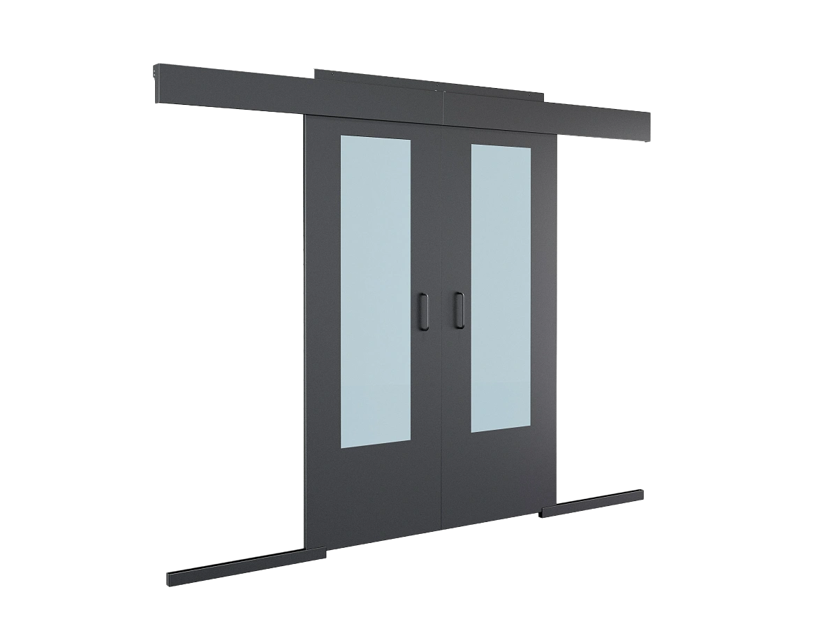 Предназначена для изоляции потоков холодного и горячего воздуха. Дверь двухстворчатая раздвижная со стеклянными окнами устанавливается на входе в изолированный коридор, шириной от 900 до 1200 мм. Крепится винтами непосредственно к шкафам.