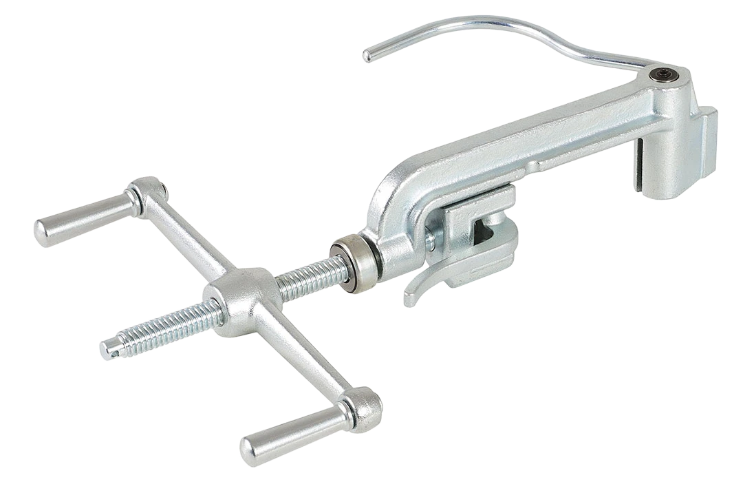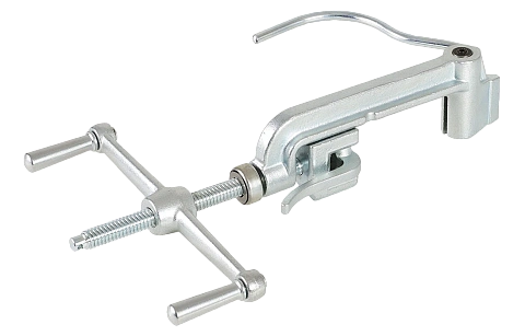 Инструмент для натяжения ленты имеет рычаг для захвата, фиксации ленты и продольный лентопряжный механизм. Обрезка ленты происходит за счет отжатия рычага поворотного ножа инструмента. Ручка ножа исполнена из прочной стали, покрыта резиновой оболочкой, что уменьшает вероятность соскальзывания руки во время монтажа и облегчает процесс обрезки ленты.