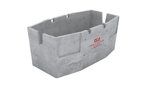 Колодец имеет в сечении восьмиугольную форму и состоит из двух элементов – верхней и нижней половин. На элементах колодца имеются петли для строповки при погрузке и разгрузке их с автомобиля, а также для опускания в котлован. Перекрытие верхнего элемента дополнительно армировано и содержит круглое отверстие диаметром 600 мм для формирования горловины с люком. В основании нижней половины колодца с внутренней стороны расположена прямоугольная ниша. При необходимости, ее стенку вырезают для создания дренажа. На внутренних поверхностях торцевых стенок элементов колодца имеются ниши. В центре ниш расположены технологические отверстия для ввода двух труб с внутренним диаметром 100 мм. Для ввода и вывода каналов на наружных поверхностях боковых стенок колодца расположены по две ниши, с каждой из сторон.