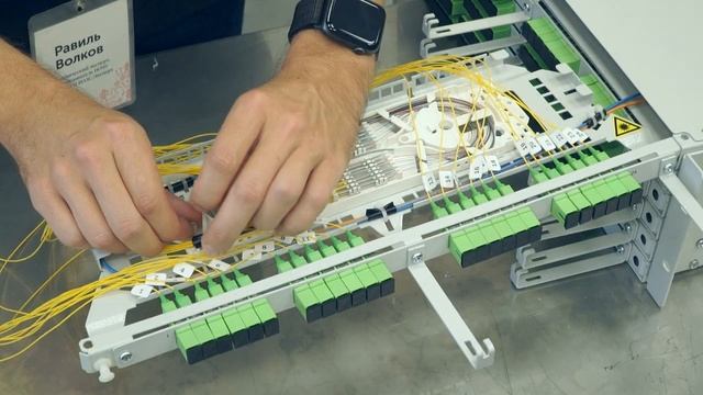 Оптические волокна в модулях поступают от ВКР в защитных транспортных трубках и закрепляются стяжками в узле ввода. Зона монтажа волокон располагается на металлических выдвижных полках поворотного типа, что облегчает монтаж и последующее обслуживание.