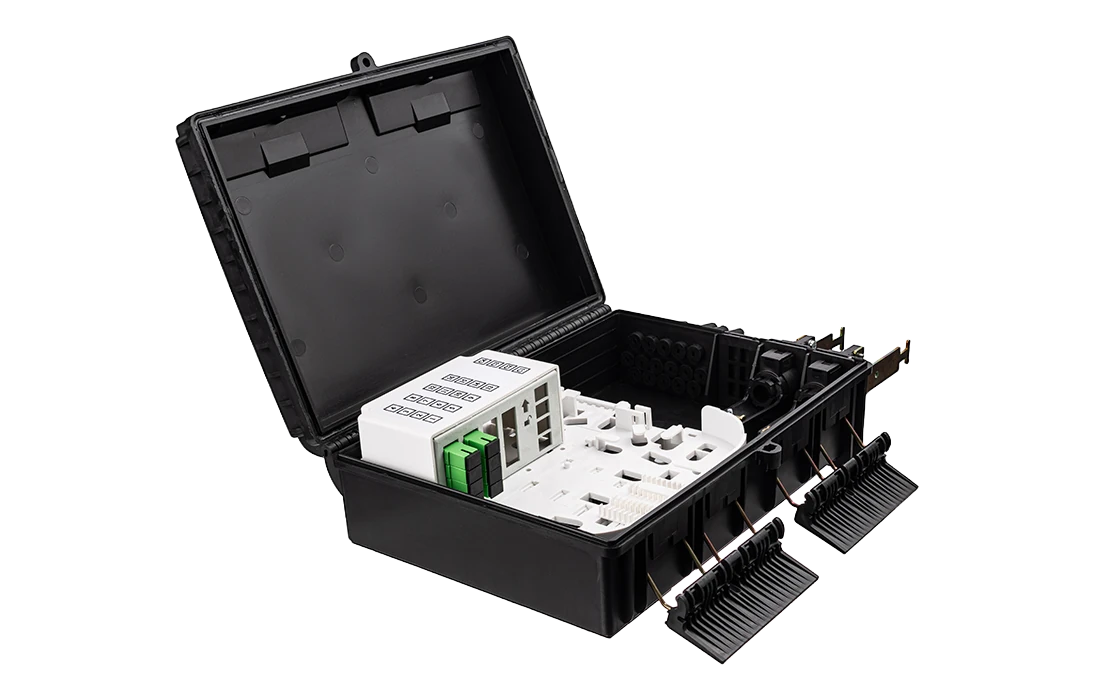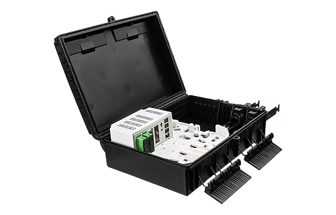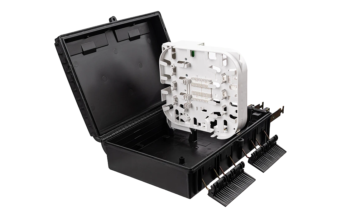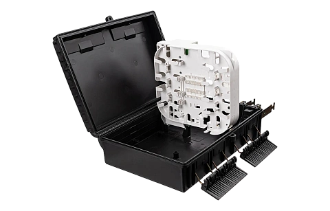 Выполнена из устойчивого к атмосферным воздействиям, УФ стойкого пластика и имеет пыле-влагозащищенную тупиковую конструкцию (ввод ОК и вывод абонентских дроп-кабелей производится с одной стороны).