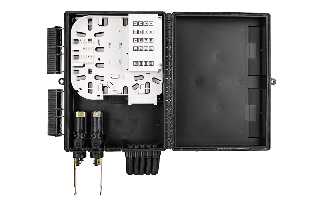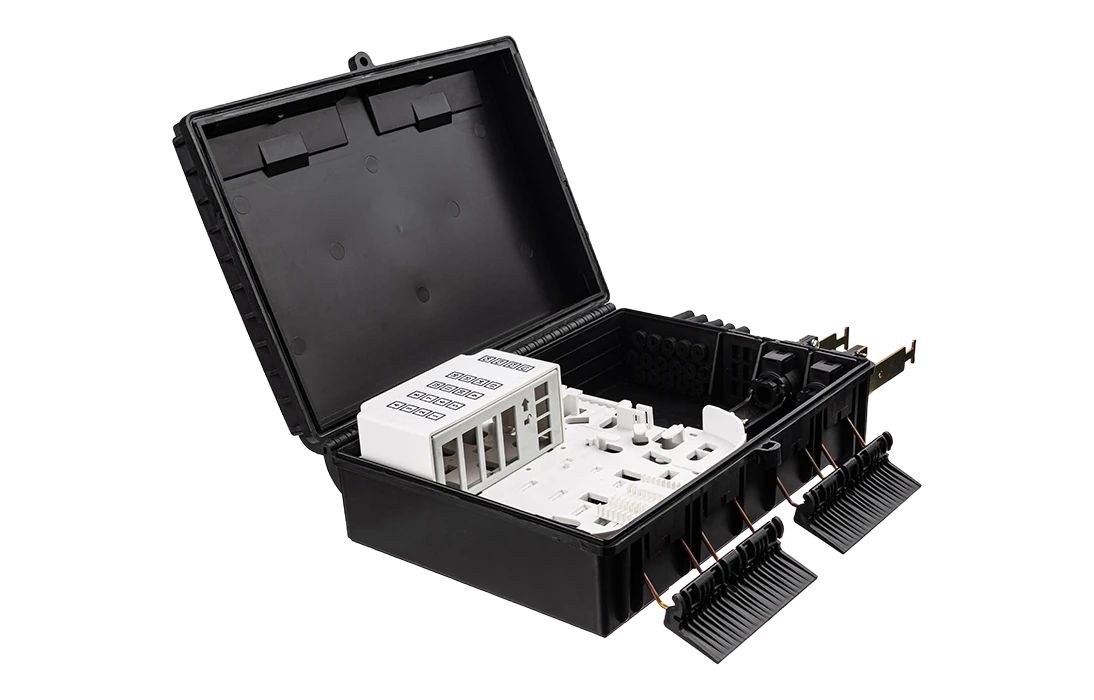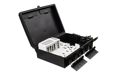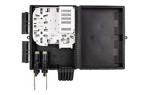 Выполнена из устойчивого к атмосферным воздействиям, УФ стойкого пластика и имеет пыле-влагозащищенную тупиковую конструкцию (ввод ОК и вывод абонентских дроп-кабелей производится с одной стороны).