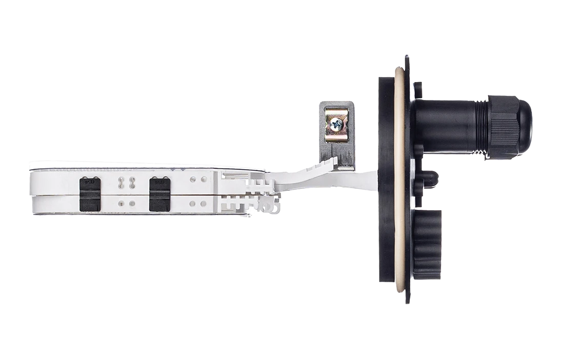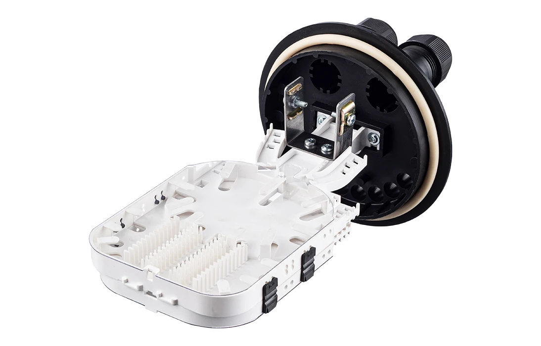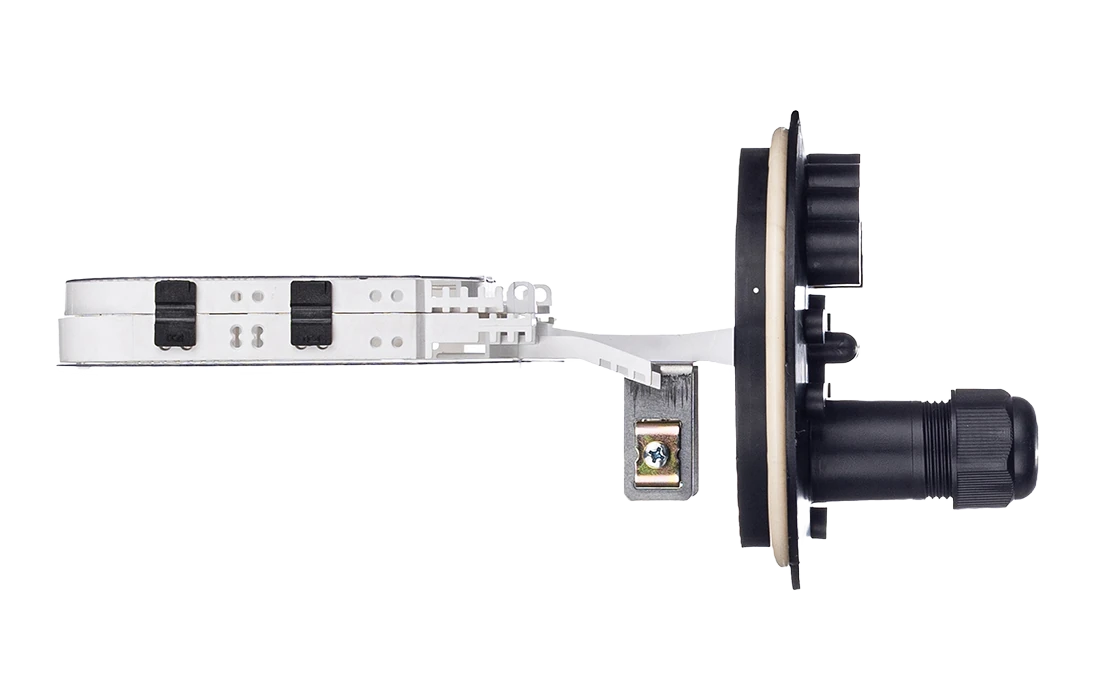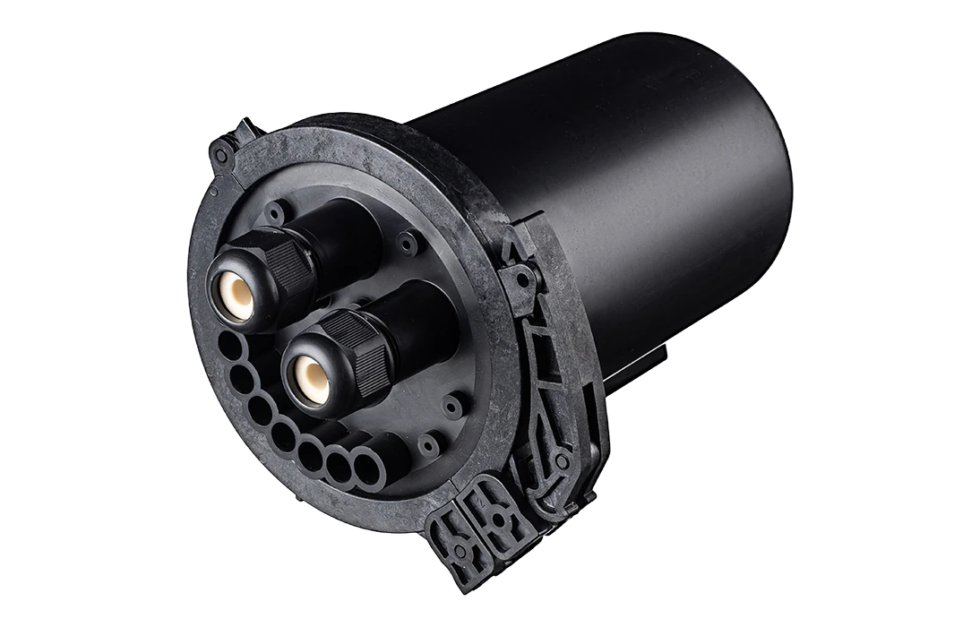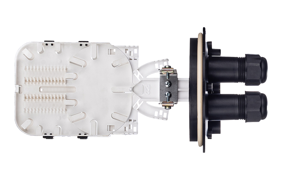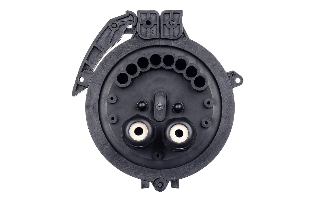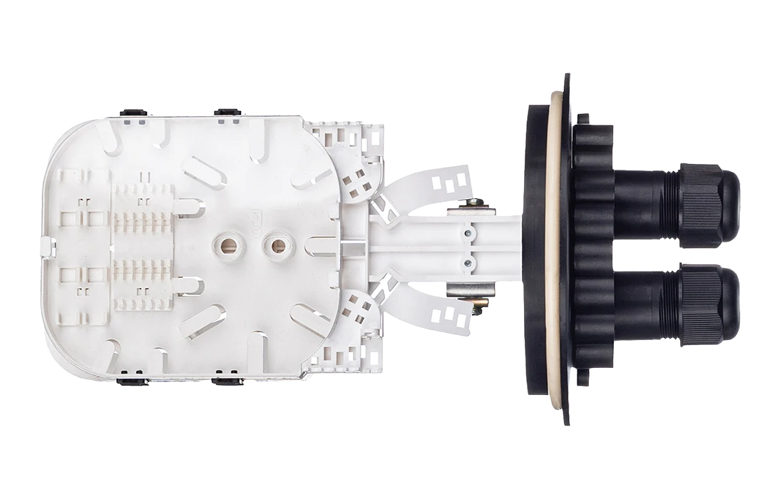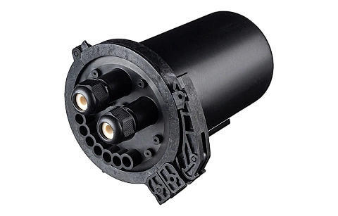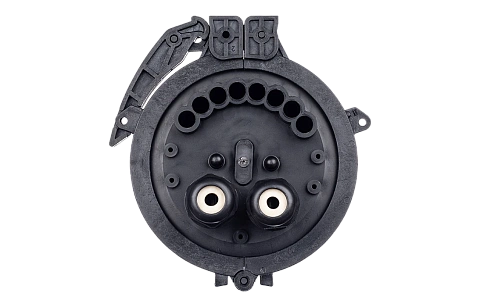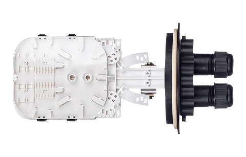 Ввод абонентских дроп-кабелей осуществляется с помощью проходных отверстий на оголовнике, диаметр которых позволяют вводить в муфту дроп-кабели с разъемами SC типа. Герметизация вводов достигается с помощью разрезных эластичных втулок (заглушек).