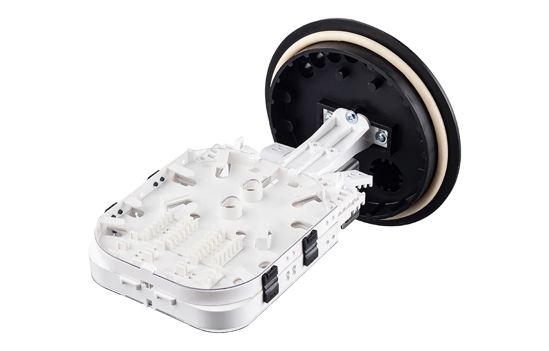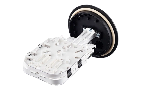 В обновлённой конструкции муфты установлен специальный внутренний лоток (кассета) с литым ложементом для 48 сварных соединений, на который установлена кассета КС-2445.