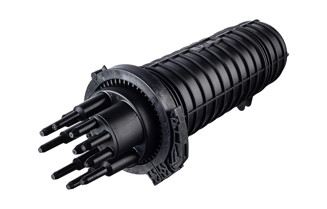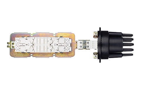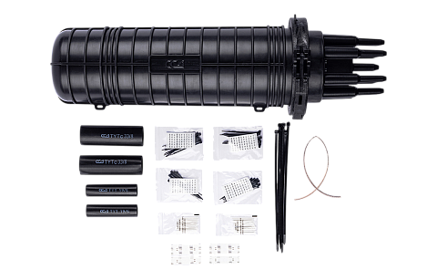 Муфта выполнена из качественной пластмассы и имеет пыле-влагозащищенную тупиковую конструкцию (ввод ОК и вывод дроп-кабелей производится с одной стороны), с уплотнительной прокладкой на стыке кожуха с оголовником.