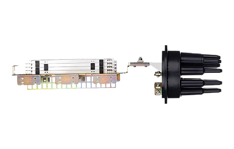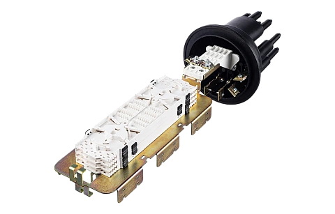 В муфте предусмотрен овальный ввод для транзитной петли оптических модулей без разрезания. Выкладка петли модулей осуществляется на лотке со стороны кассет.