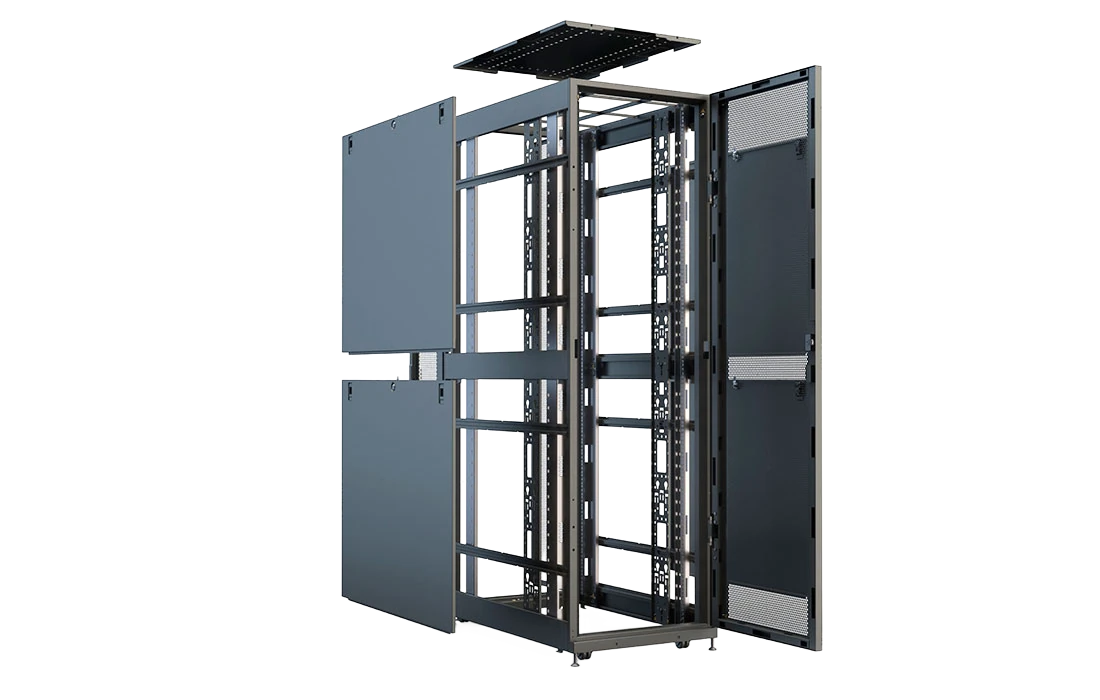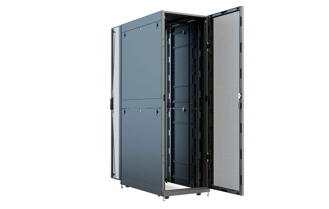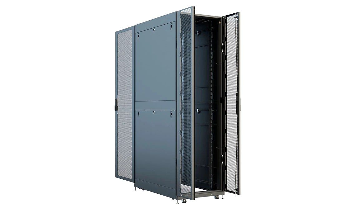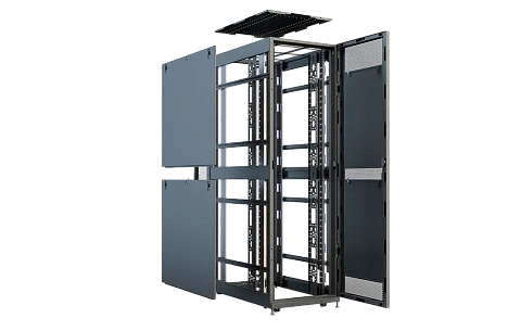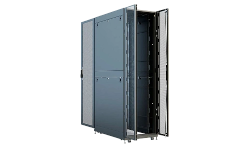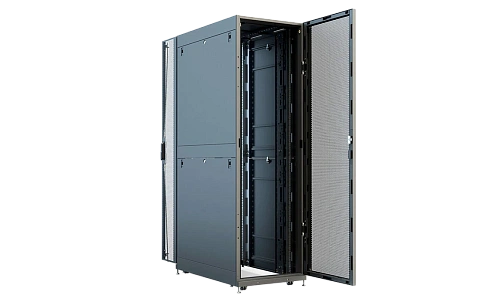 Доступ для монтажа, коммутации и обслуживания оборудования возможен с четырех сторон: через боковые стенки, переднюю и заднюю двери. В базовой комплектации шкаф имеет 4 вертикальные направляющие, регулируемые по глубине с юнитовой разметкой, вертикальные органайзеры.