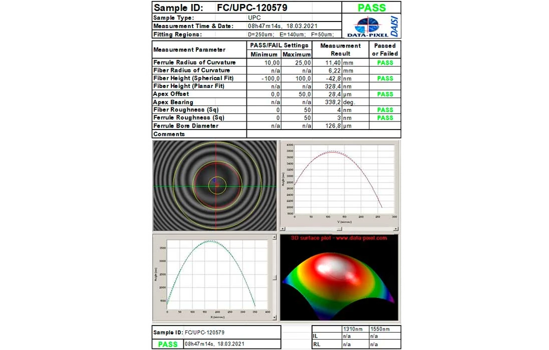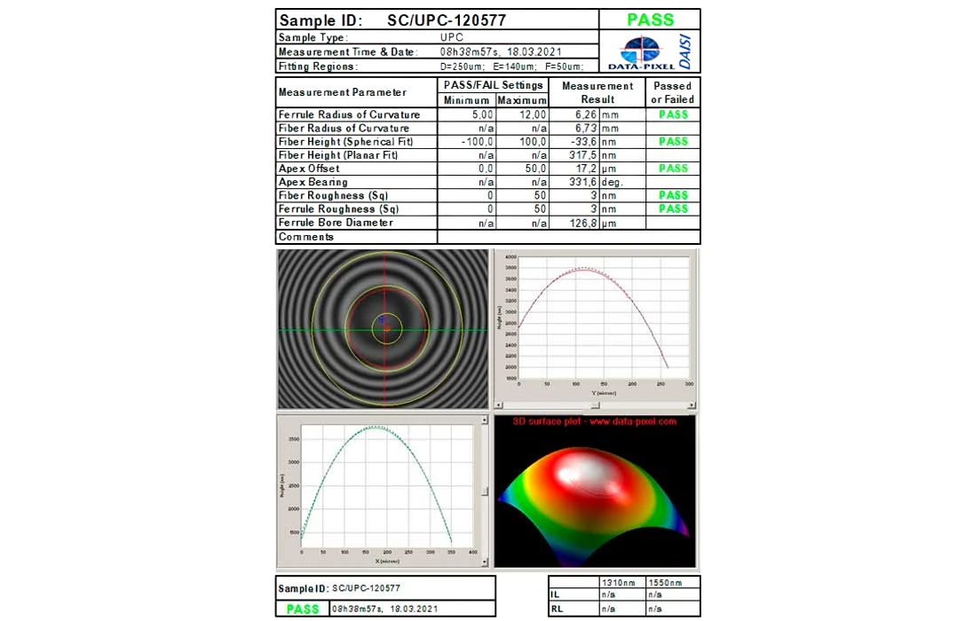 Высокое качество оптических шнуров серии ССД HS гарантируется 100% контролем качества оптических параметров шнуров. Типовое качество полировки торца ферулы приведено на фото с экрана интерферометра.