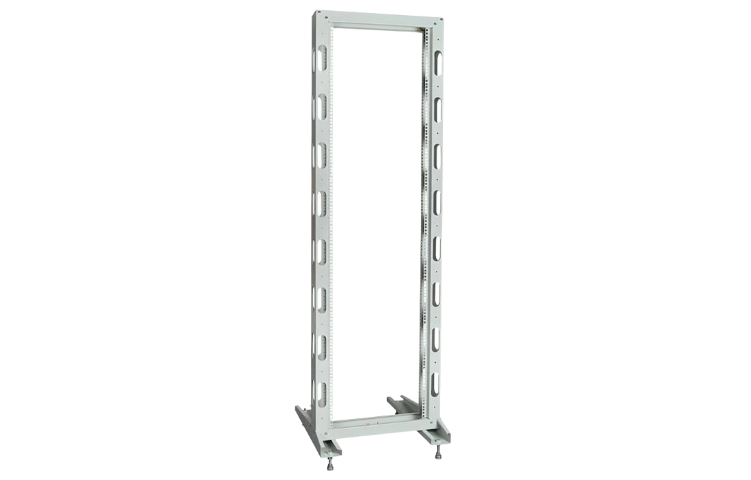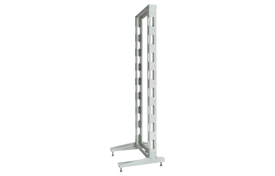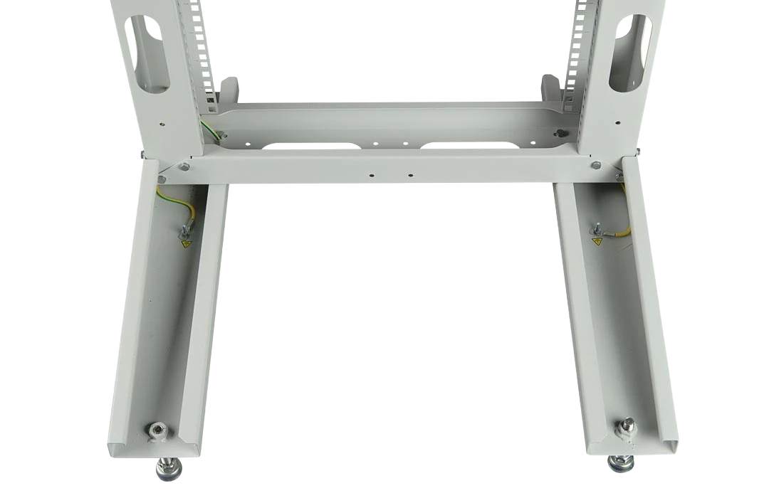 Универсальные стойки 19" имеют полностью разборную однорамную конструкцию, каркас повышенной жесткости скреплен болтами, материал сталь 2 мм и 1.5 мм. Для удобства монтажа и коммутации оборудования предусмотрена перфорация по всей длине рамы, широкий спектр аксессуаров. При организации крупных коммутационных узлов возможно крепление стоек между собой через вертикальный кабельный органайзер. Стойка устанавливается на регулируемые винтовые опоры (ножки), компенсирующие неровности пола, или ролики.