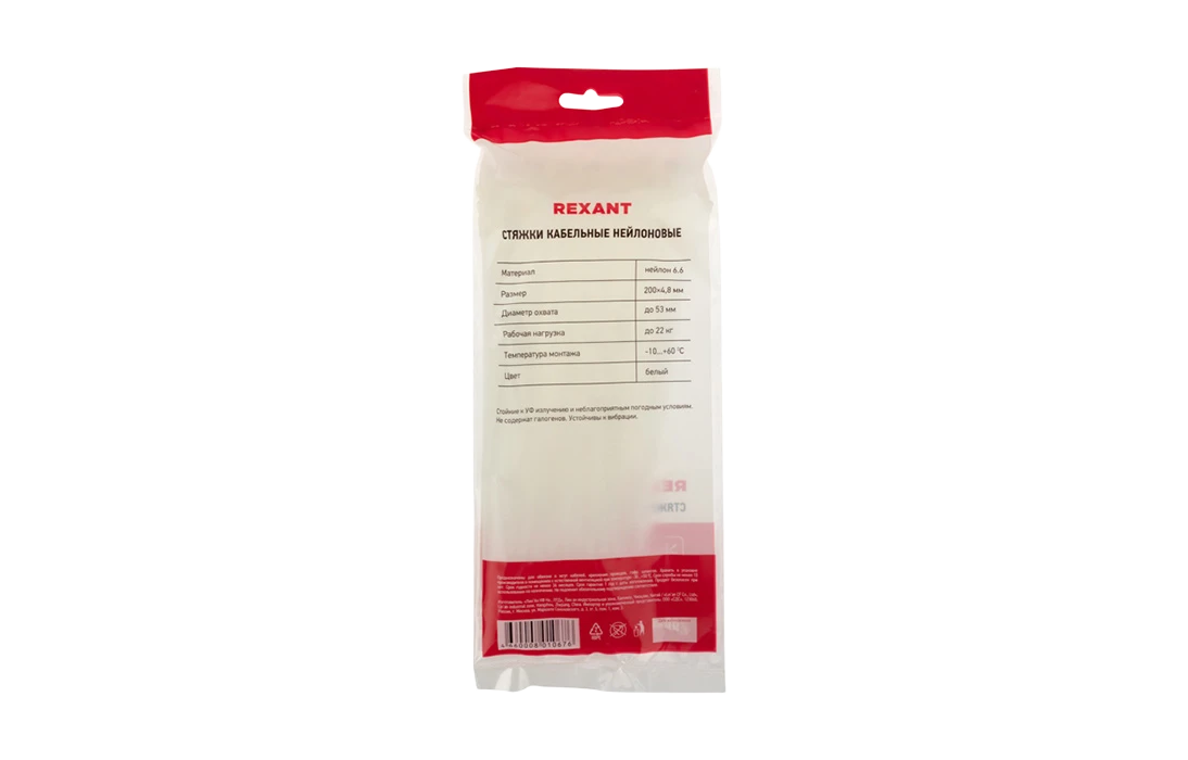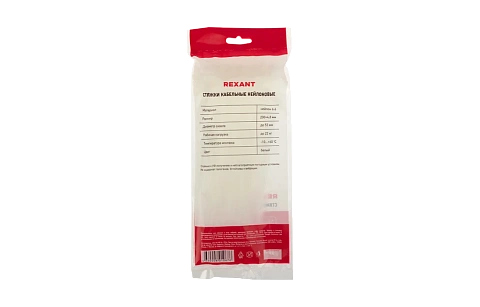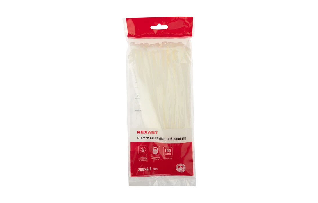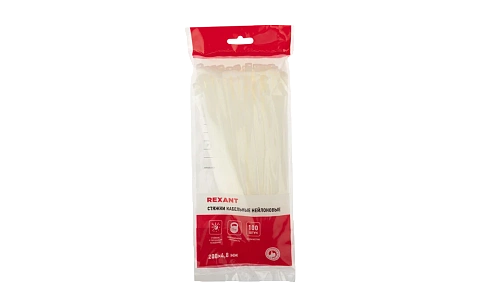 07-0200-5 Хомут-стяжка кабельная нейлоновая REXANT 200 x4,8 мм, белая, упаковка 100 шт.