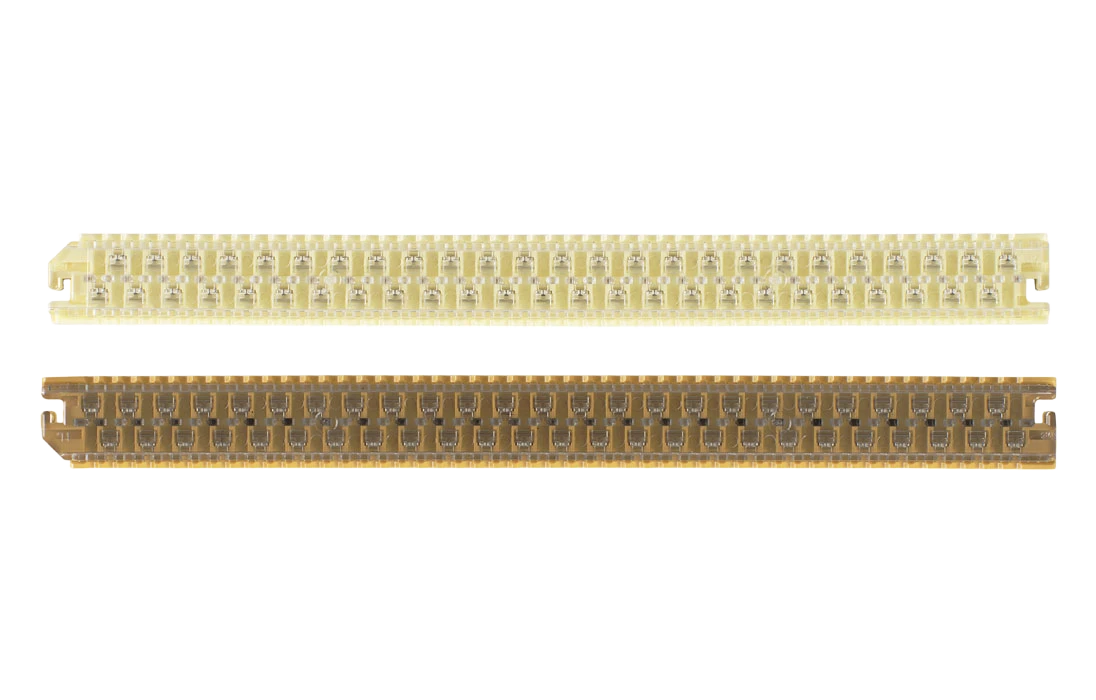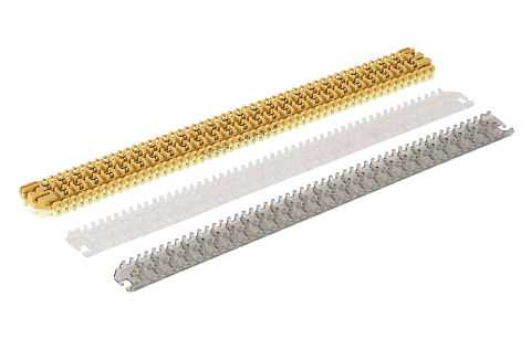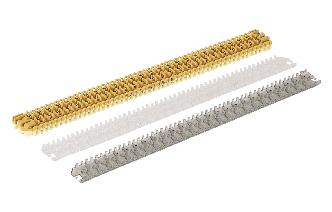 Предназначен для прямого сращивания 25 пар одновременно. Крышка модульного соединителя используется для нанесения маркировки и нумерации пар. Основания и крышки прозрачны, что позволяет визуально проконтролировать правильность сращивания пар.