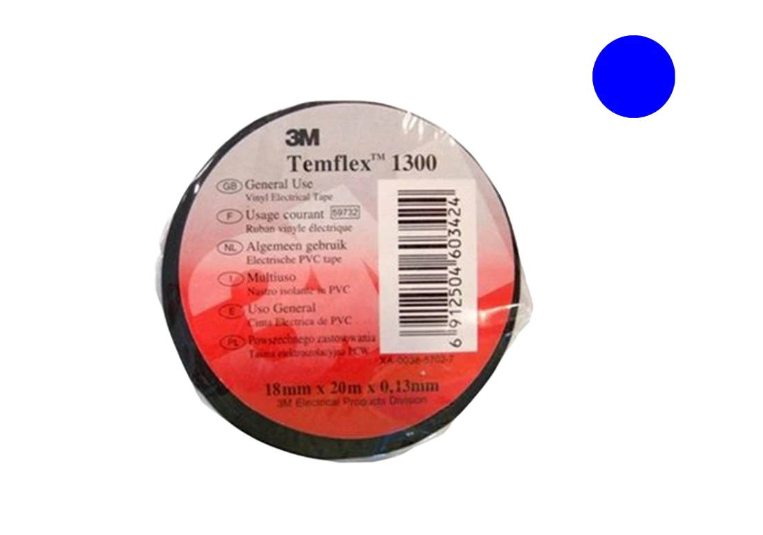 7100080345 Temflex 1300, синяя, универсальная изоляционная лента, 19мм х 20м х 0,13мм