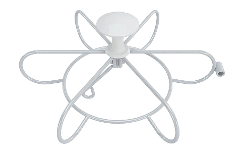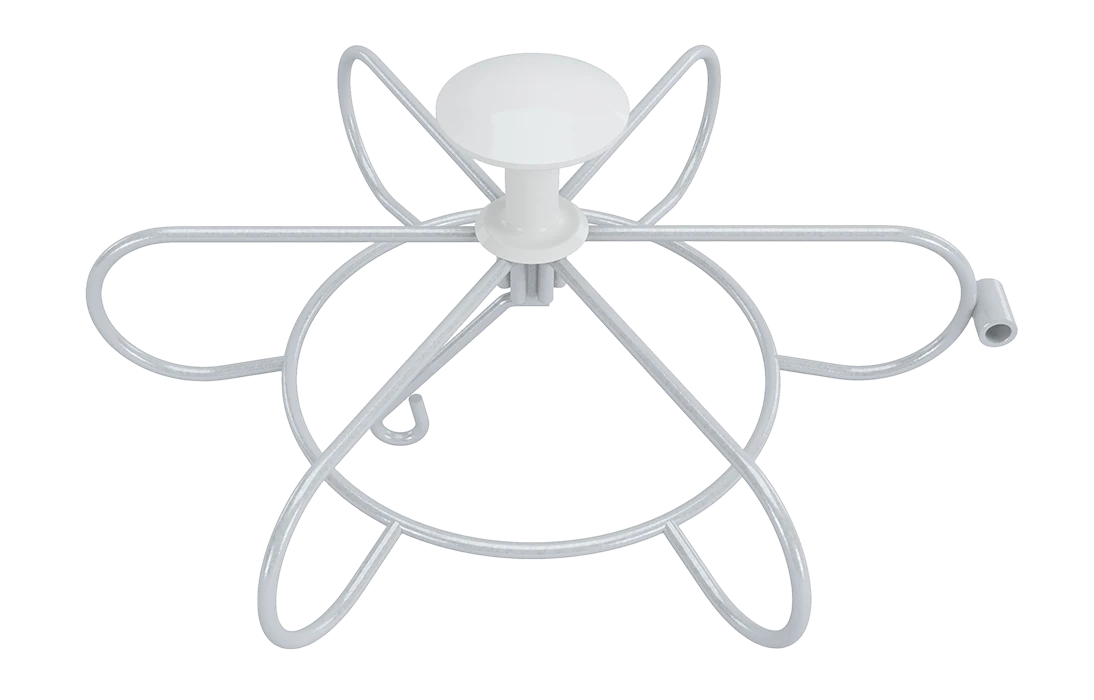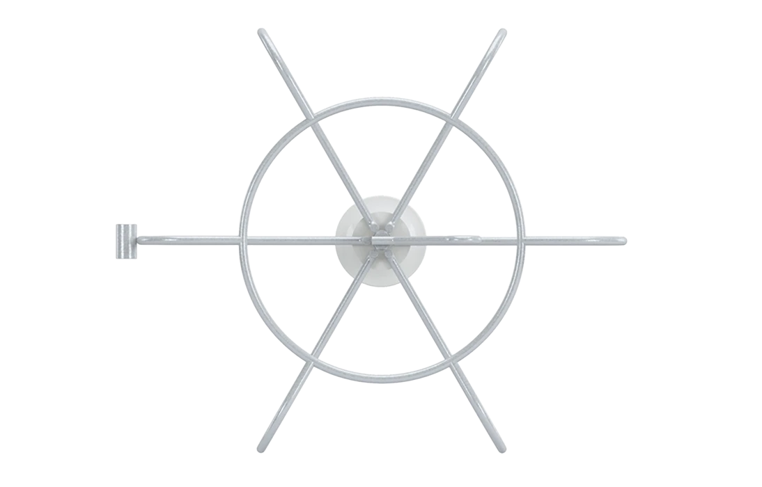Кассета-основание изготовлена из металлических элементов покрытых порошковой эмалью. Состоит из стойки и барабана. Стойка изготовлена из трубы, концы которой заглушены пластиковыми пробками для предотвращения попадания воды и грязи. Стойка имеет устойчивое основание и вертикальную часть, к которой приварена ось для размещения на ней барабана, а также двухсторонняя направляющая, для фиксации в ней одного из концов стеклопрутка. Верхняя часть стойки изогнута в виде ручки для удобства ее транспортировки. Барабан состоит из 6 изогнутых спиц, которые прочно приварены к кругу. На вершине одной из спиц находится втулка, в которую вставляется другой конец стеклопрутка. Барабан установлен на оси стойки. С помощью зажимного винта регулируется степень его подвижности.