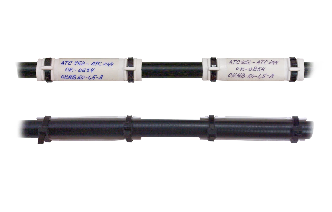 В комплектах используются детали, изготовленные из полимерных материалов, выдерживающих условия эксплуатации кабелей в канализации и коллекторах. КМП выдерживает длительное воздействие горячей воды при прорыве теплотрасс без утраты надписи, а также не подвержен коррозии.