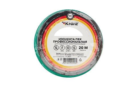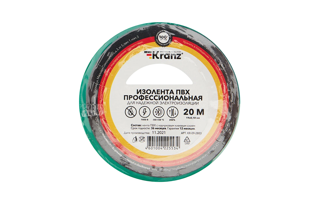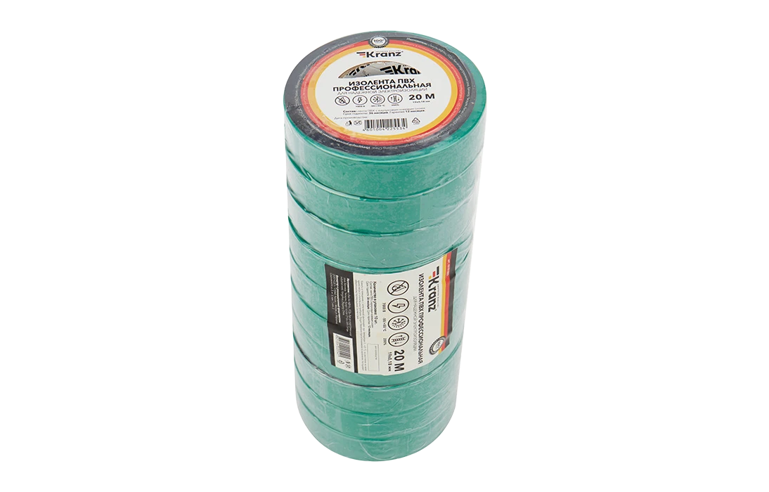 Профессиональная изоляционная лента KRANZ класса PREMIUM используется для электрической изоляции, цветной маркировки, соединения, защиты от внешних факторов и герметизации кабелей, проводов и шнуров.