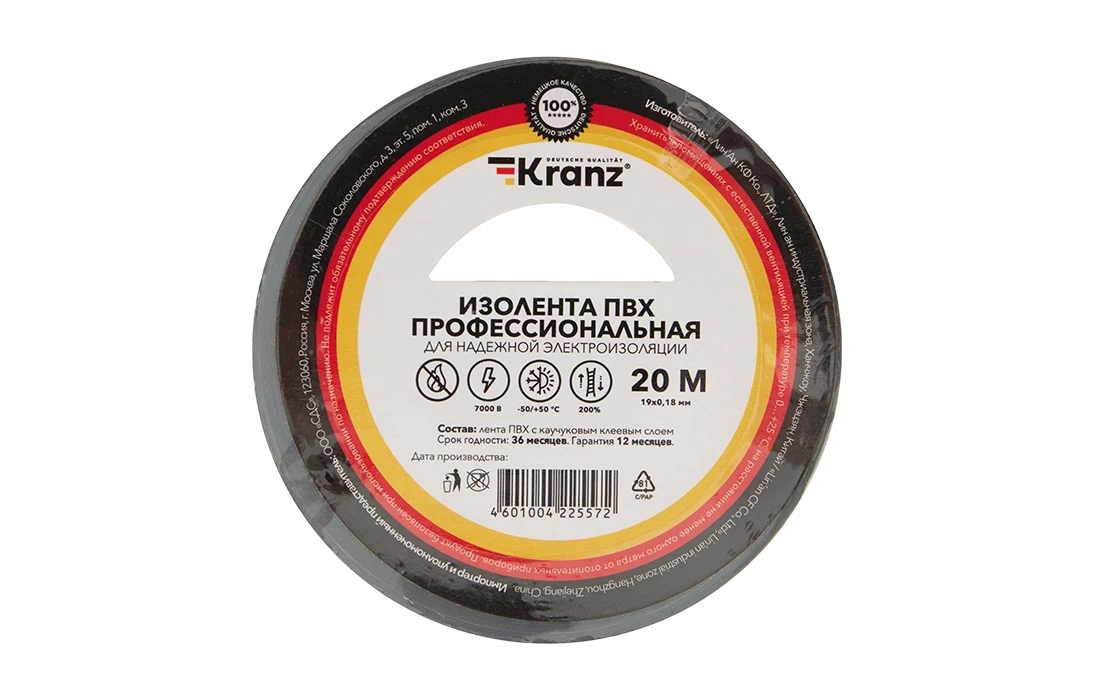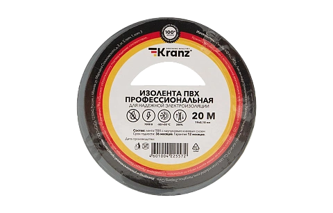 Профессиональная изоляционная лента KRANZ класса PREMIUM используется для электрической изоляции, цветной маркировки, соединения, защиты от внешних факторов и герметизации кабелей, проводов и шнуров.