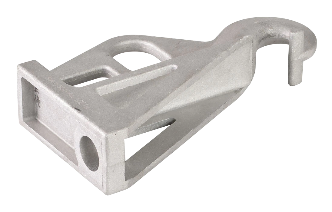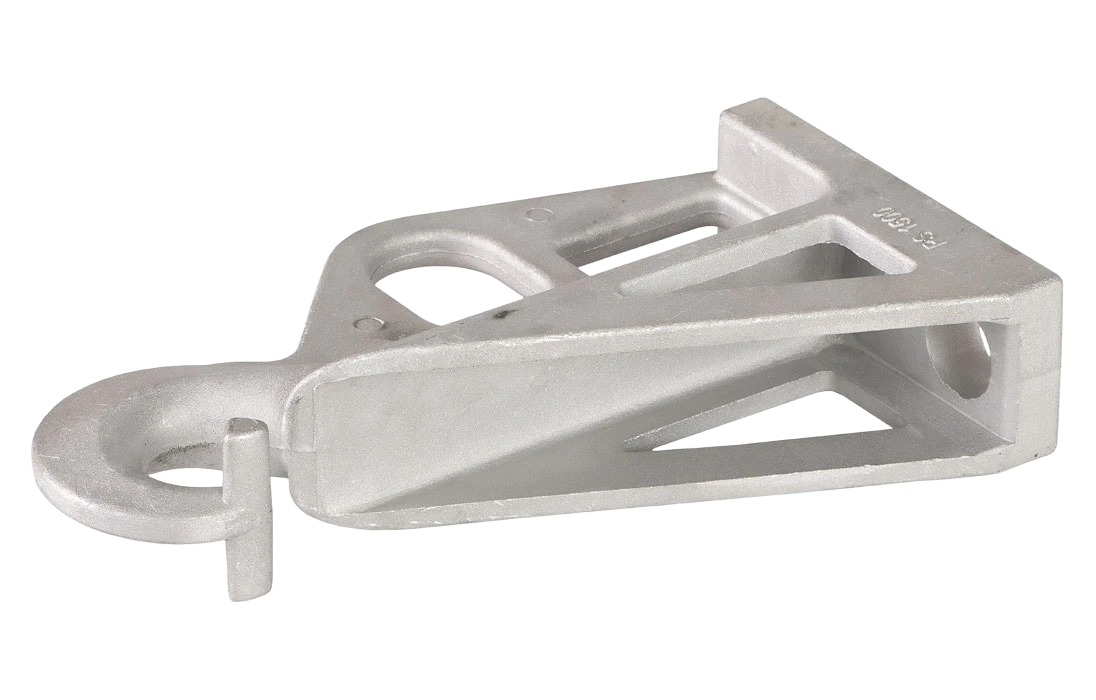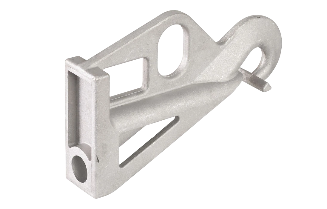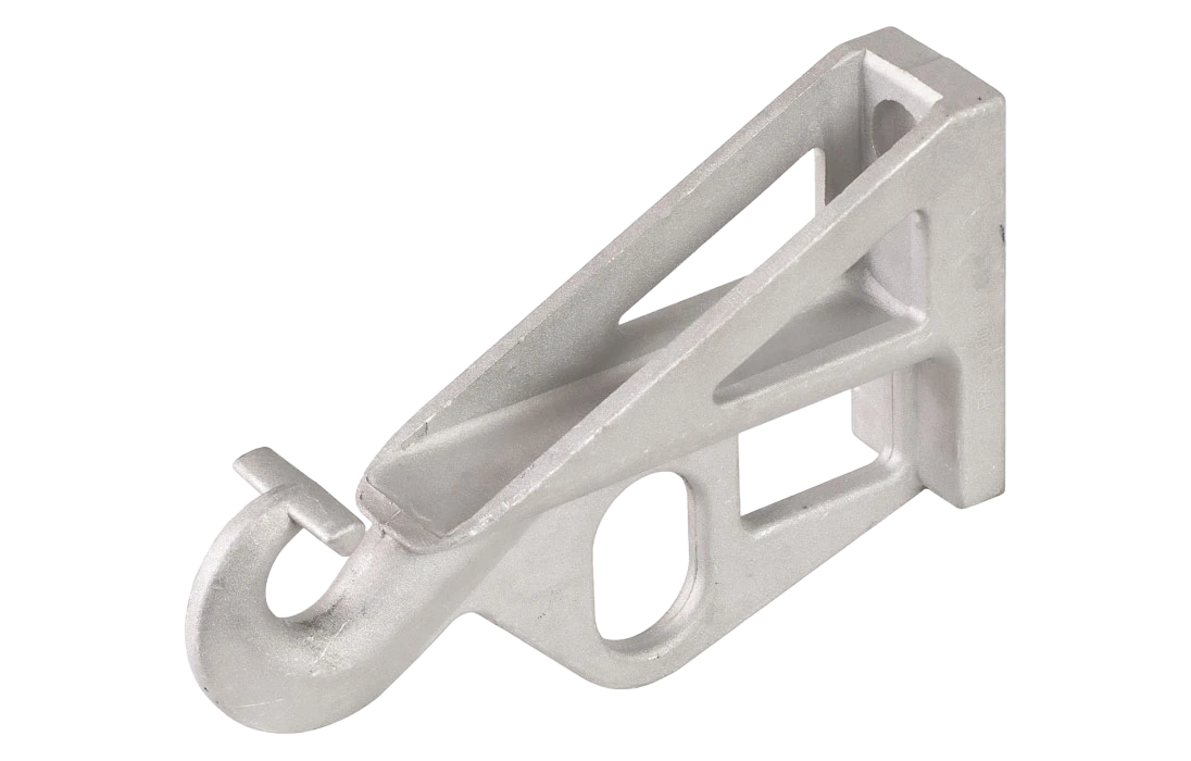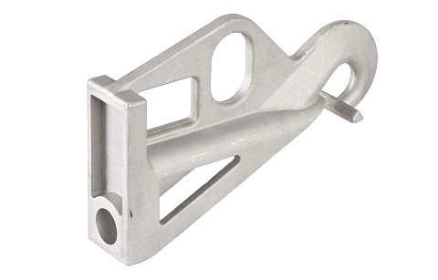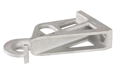 Применяется для крепления провода марки СИП на промежуточных опорах. Отличительная особенность - это шарнирное разъемное кольцо подвеса. Возможно применение на угловых опорах при углах до 30°.