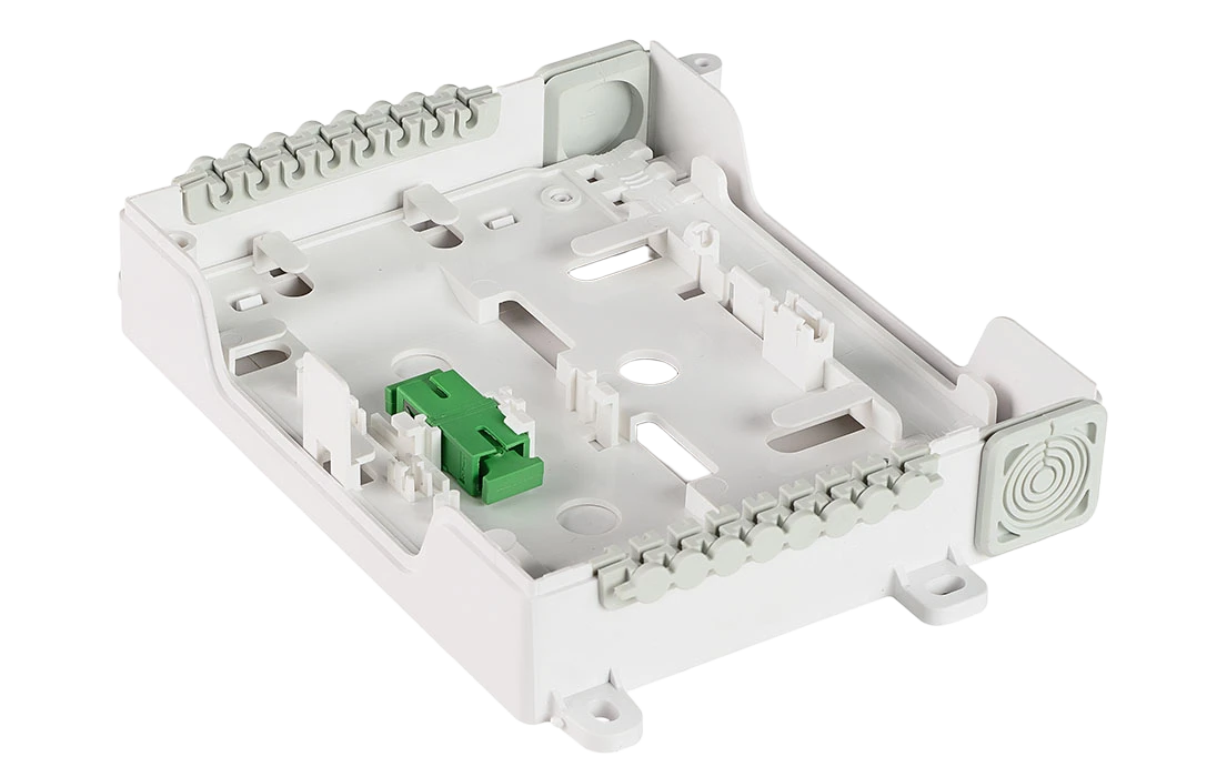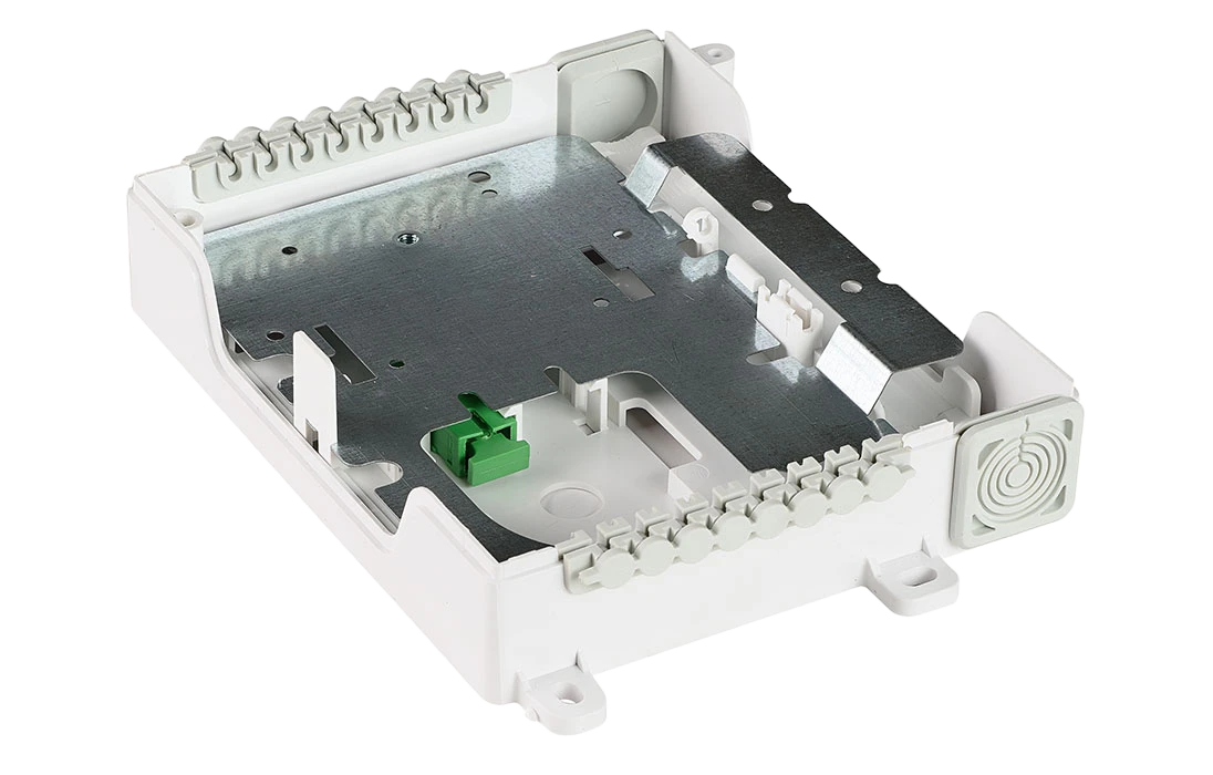Имеют корпус из трудногорючего АБС-пластика. Внутри корпуса находится вставка, на которой выкладывается запас волокон пигтейлов, размещаются ложементы для КДЗС и оптические адаптеры для подключения входных разъемов сплиттерных модулей. Зона монтажа ОВ закрывается металлической крышкой к которой крепятся сплиттерные модули. Для ограничения доступа оснащаются винтом-секреткой.
