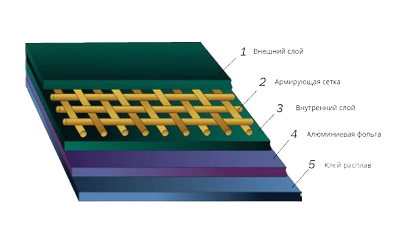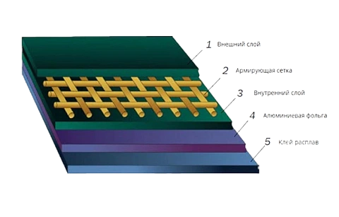 Манжеты имеют многослойную структуру, включающую композитную армирующую сетку и слой алюминиевой фольги для защиты от поперечной диффузии. Устойчивы к УФ излучению и температурным колебаниям. Термоиндикаторная краска на всей поверхности позволяет контролировать качество монтажа. При достаточном нагреве манжеты термокраска исчезает. Это значит, что данный участок манжеты уже прогрет и клей на внутренней поверхности расплавлен. Слой клея-расплава (цвет – красный) обеспечивает надежную герметизацию при усадке манжеты.