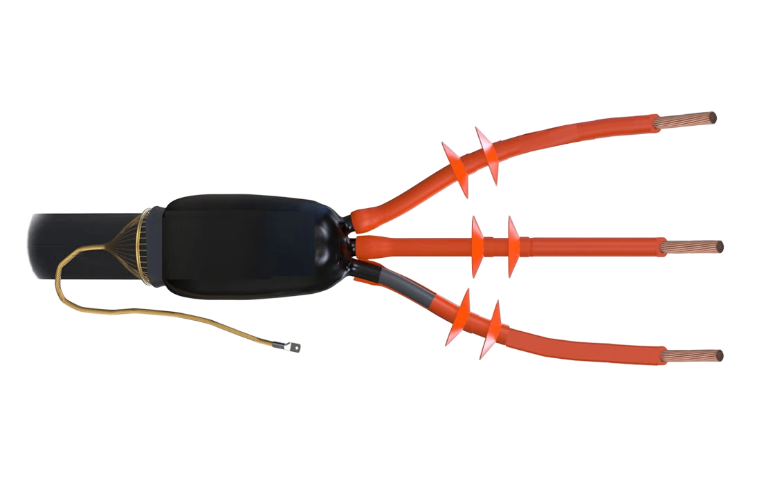 В составе муфты применяются трубки стресс-контроля снижающие риск пробоя изоляции на срезе полупроводящего слоя и специальный герметик со свойствами выравнивания напряженности электрического поля. Использование изолирующей антитрекинговой трубки и изолятора снижает риск пробоя по поверхности изоляции.
