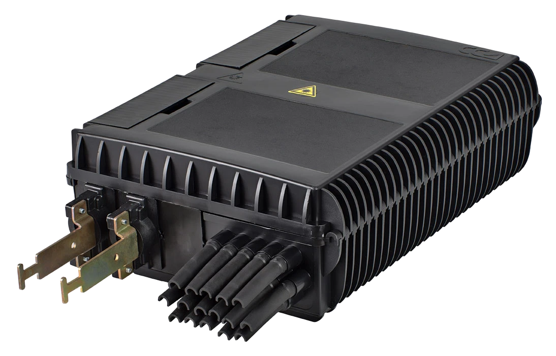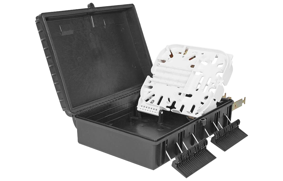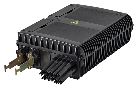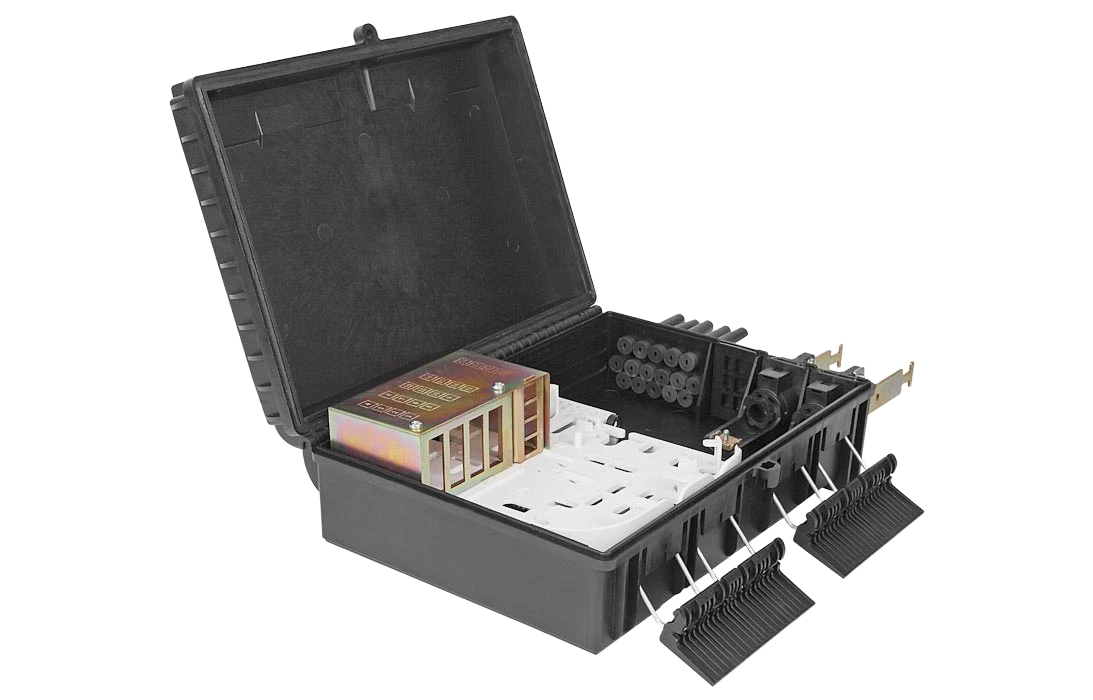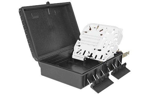Выполнена из пластмассы и имеет пыле-брызгозащищенную тупиковую конструкцию (ввод ОК и вывод ШОС производится с одной стороны).