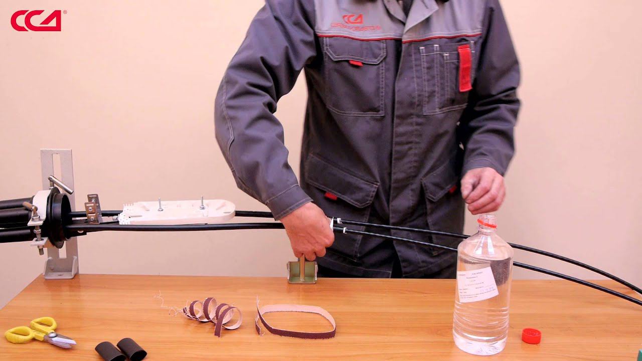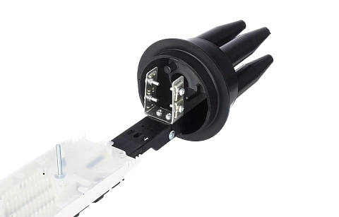 Способ герметизации вводов кабелей, осуществляется с помощью термоусаживаемых трубок ТУТ. Круглые патрубки на оголовнике муфты изначально герметичны и имеют ступенчатую форму с разными диаметрами. Срезая патрубок в определенном месте можно подобрать отверстие максимально близкое к диаметру вводимого кабеля. Таким образом, исключается излишнее натяжение ТУТ после усадки при вводе относительно тонких кабелей. Все патрубки муфты оснащены также индивидуальными узлами крепления ЦСЭ.