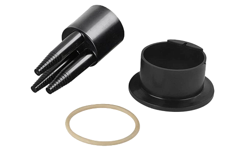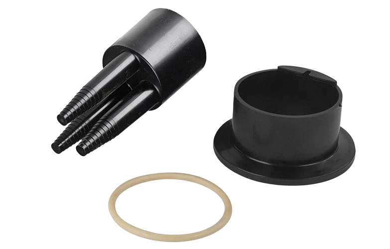 Герметизация корпуса с оголовниками осуществляется при помощи эластичных кольцевых прокладок и армированных пластиковых хомутов с самозатягивающимся замком.