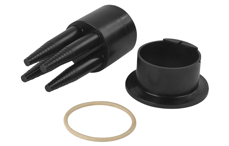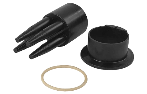 Герметизация корпуса с оголовниками осуществляется при помощи эластичных кольцевых прокладок и армированных пластиковых хомутов с самозатягивающимся замком.