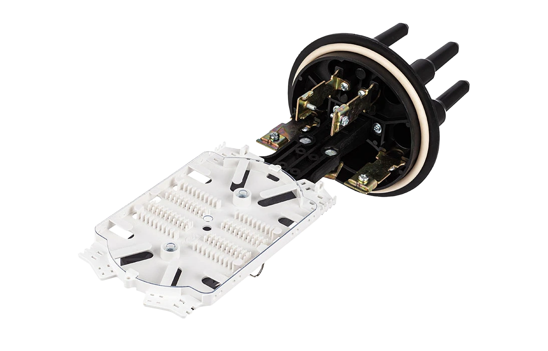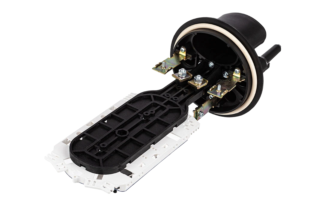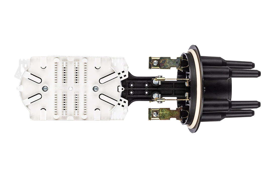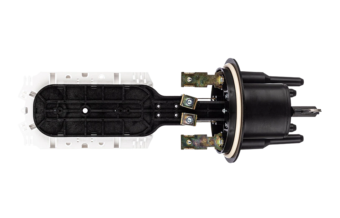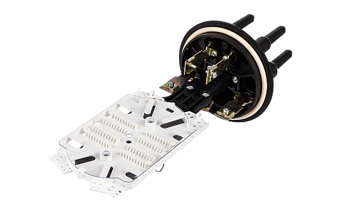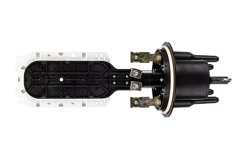 Предназначена для монтажа подвесных самонесущих ОК, оптических кабелей с вынесенным силовым элементом типа «8», а также городских кабелей любых конструкций, в том числе и с броней из стальной гофрированной ленты. В муфте предусмотрен овальный ввод для транзитной петли оптических модулей без разрезания. Выкладка петли модулей осуществляется на лотке с противоположной стороны от кассет.