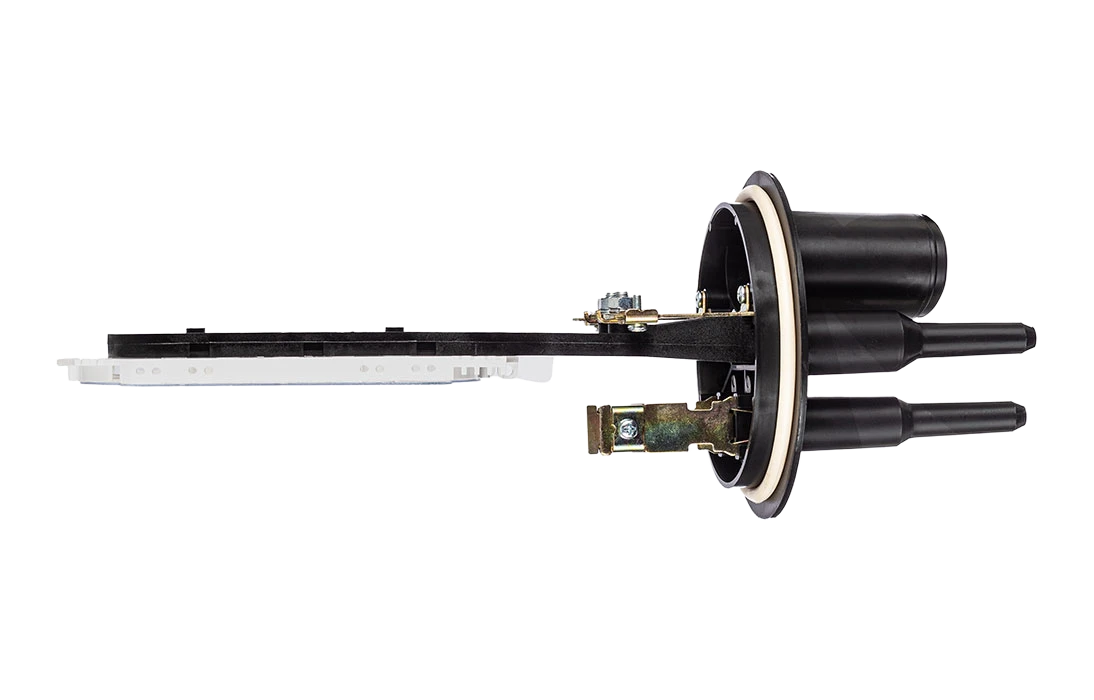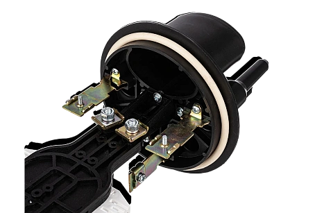 Овальный патрубок муфты может использоваться для одного из перечисленных случаев: 1) ввода транзитной петли кабеля или 2) ввода двух кабелей диаметром до 25 мм. В обоих случаях для герметизации необходимо дополнительно приобрести «Ввод №6».