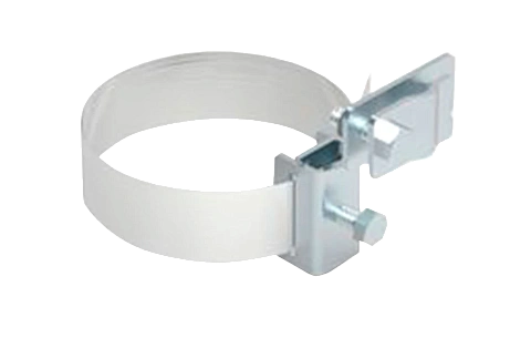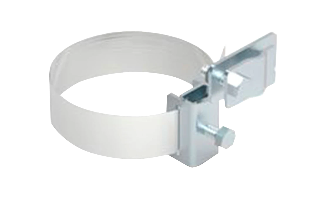 Хомут на металлические трубы применяется для крепления круглого (8-10 мм) либо плоского (25 мм) проводника к водосточной трубе. Способ крепления проводника – болтовой зажим из нержавеющей стали. Бандажная лента позволяет отрегулировать диапазон зажима от 20 до 80 мм в зависимости от диаметра трубы.