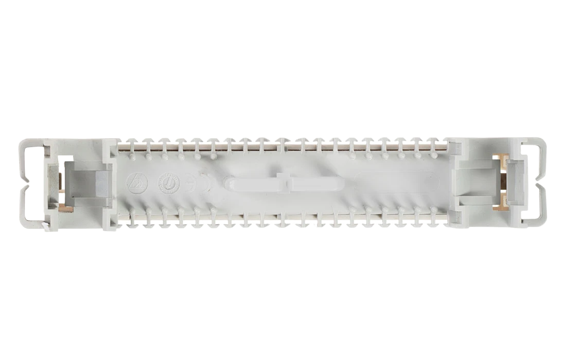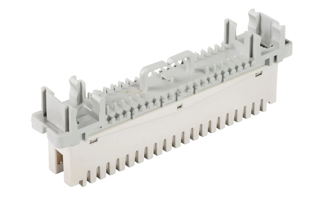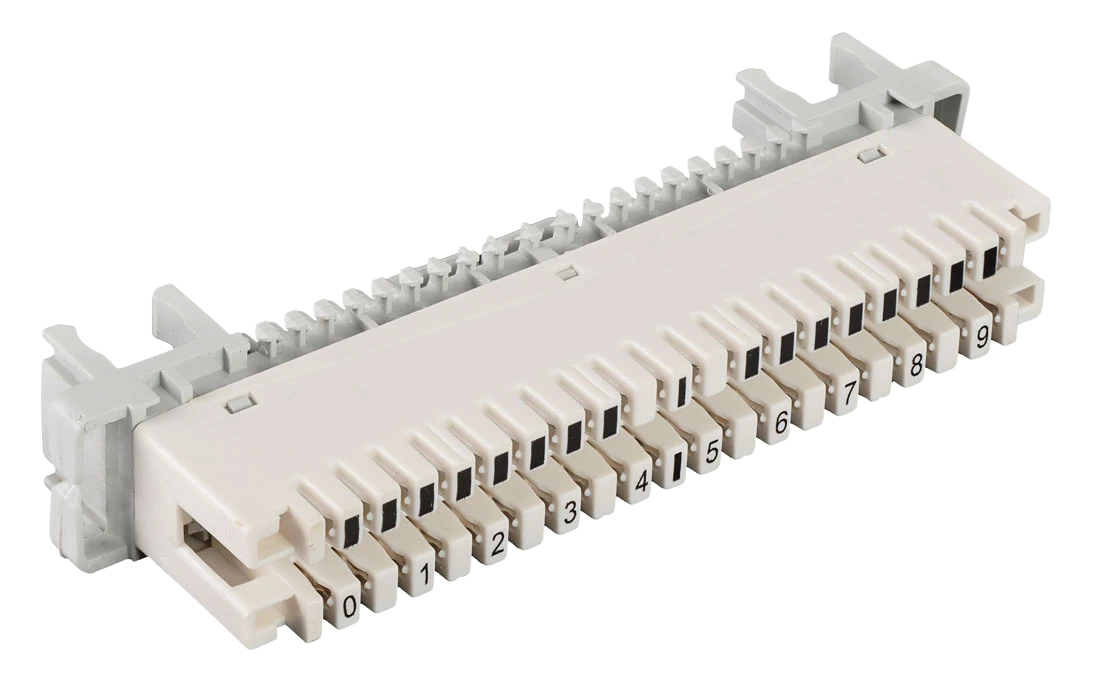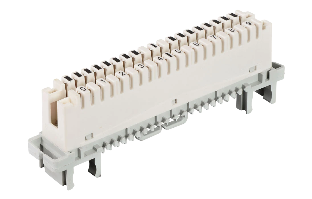 Представляет собой пластиковую конструкцию, у которой с одной стороны подключается десятипарный кабель, а с другой стороны медные пары разводятся на конкретных абонентов. В конструкции размыкаемого плинта предусмотрена возможность установки грозозащиты.