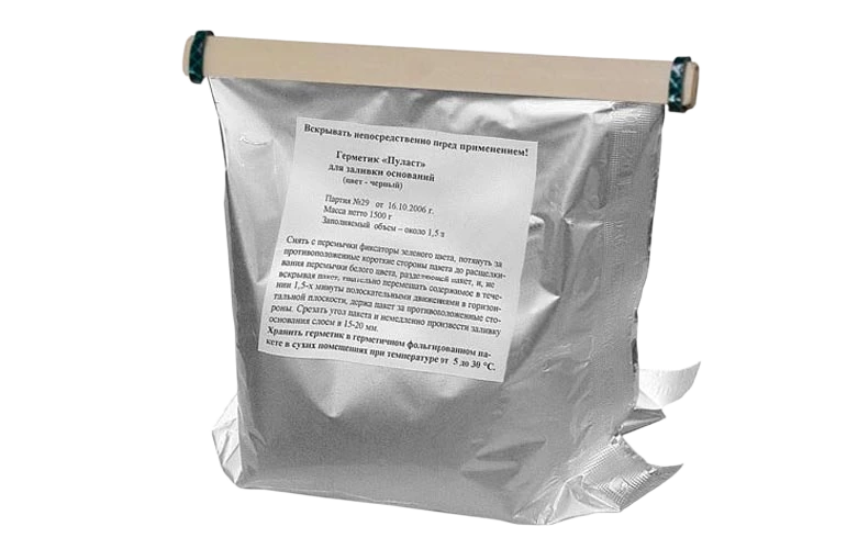 Состоит из двух компонентов – А и Б. Компоненты герметика упакованы в единый фольгированный пластиковый пакет, разделенный съемной перемычкой на две секции. Герметик имеет черный цвет и обладает хорошей текучестью при температурах не ниже -10 °С. Заливка герметика производится при температуре окружающей среды от -10 до +45 °С.