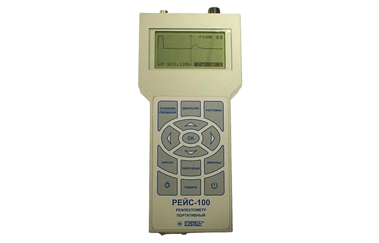 Портативный рефлектометр РЕЙС-100 упрощенный аналог модели РЕЙС-105М. Он позволяет убедиться в отсутствии обрыва или короткого замыкания в линии, обнаружить наличие в линии места повреждения или неоднородности (муфты, подключения к линии и др,), Определить характер повреждения (обрыв, короткое замыкание и др,).