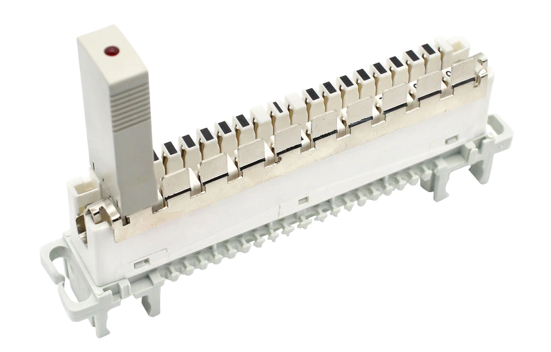 В качестве узлов стыка между парами линейных распределительных кабелей и проводкой или служебными цепями к абонентским устройствам используются однопарные модули абонентского ввода. Они устанавливаются на шине шириной 35 мм, соответствующей стандарту DIN. При этом обеспечивается возможность испытания и защиты линий.