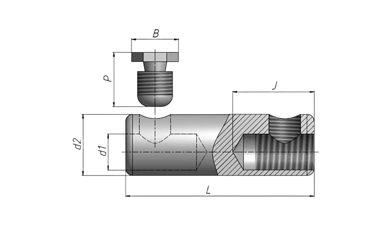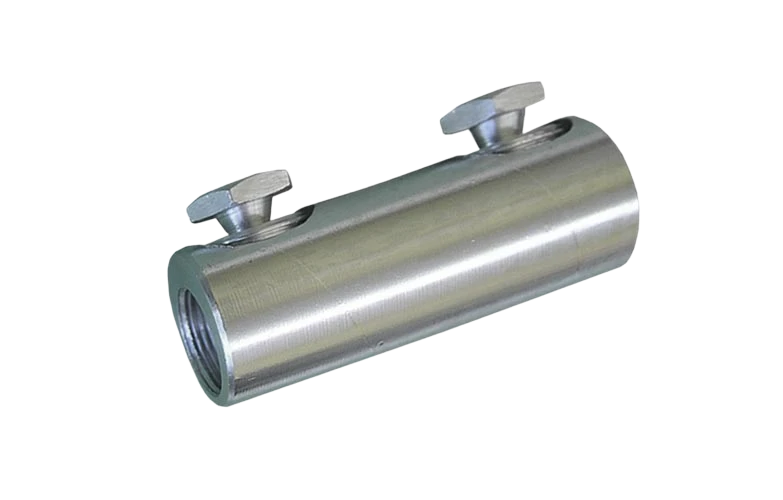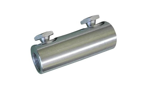 Соединитель СБ закрепляется при помощи болта со специальной срывной головкой, которая скручивается при достижении определенного усилия, обеспечивая надежное соединение.