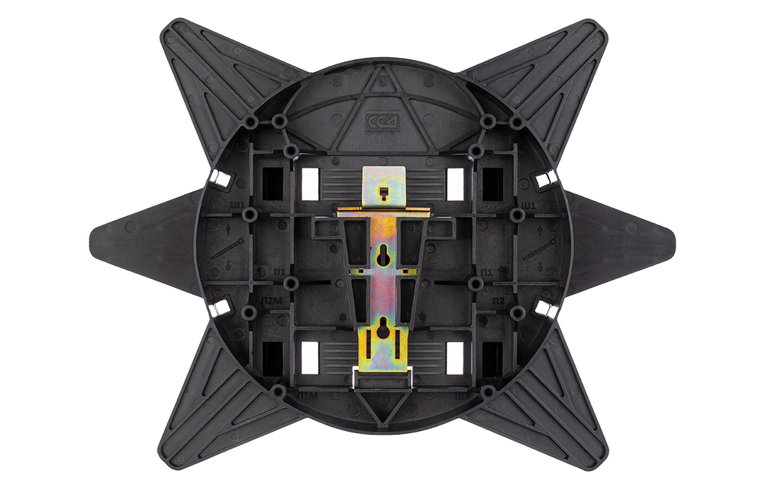 УПМК-П изготавливается из высококачественного пластика, что значительно увеличивает прочность изделия, а также обеспечивает стойкость к воздействию повышенной влажности, УФ-излучению и уменьшает нагрузку на опору и облегчает монтаж.